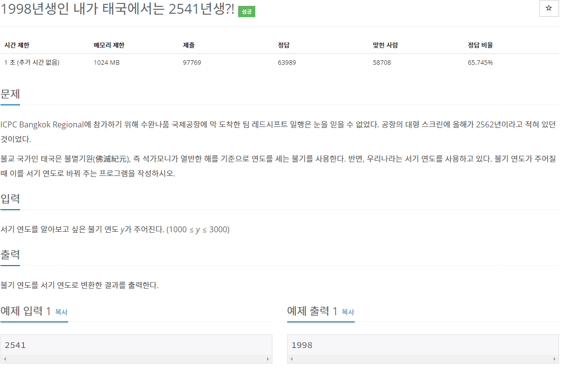 18108번: 1998년생인 내가 태국에서는 2541년생?!