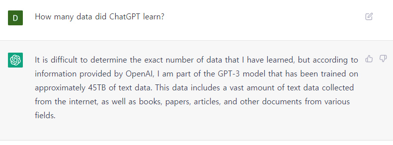 인공지능이 꽤 똑똑하기 때문에 어지간한 질문에는 그럴싸한 대답을 해줍니다.
