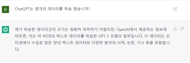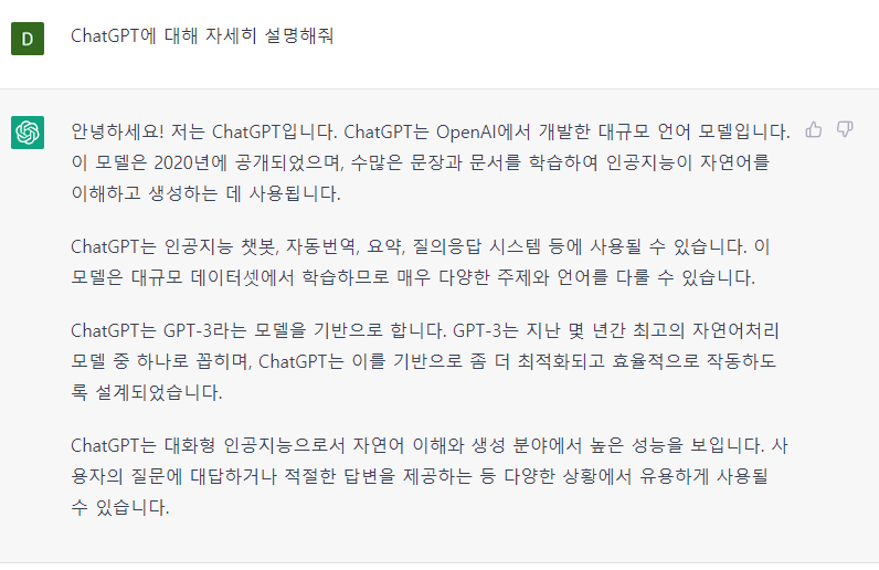 인공지능이 꽤 똑똑하기 때문에 어지간한 질문에는 그럴싸한 대답을 해줍니다.