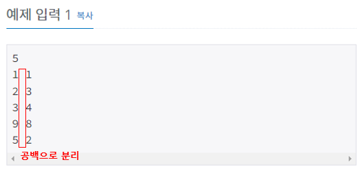 StringTokenizer st; // StringTokenizer로 공백 분리