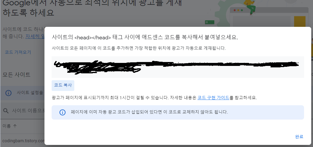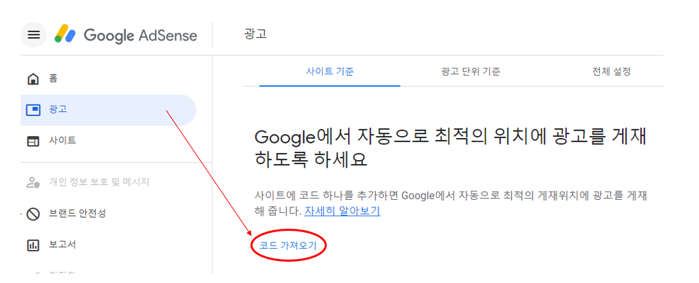 애드센스 사이트를 연결한다.