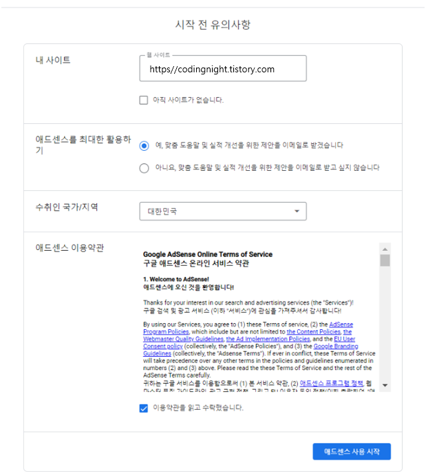 구글 계정 로그인 후에 애드센스 가입을 진행해 줍니다.