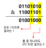 | a & b | a와 b의 각 비트들의 AND 연산. 두 비트 모두 1일 때만 1이 되며 나머지는 0이 된다. |