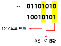 | ~ a | 단항 연산자로서 a의 각 비트들에 NOT 연산. 1을 0으로, 0을 1로 변환한다. |