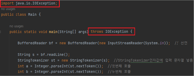 int a = Integer.parseInt(st.nextToken()); //첫번째 호출